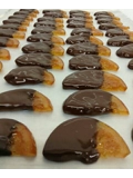 Fine Spanish Orange Confit slices hand dipped in Belgian 61% dark chocolate.